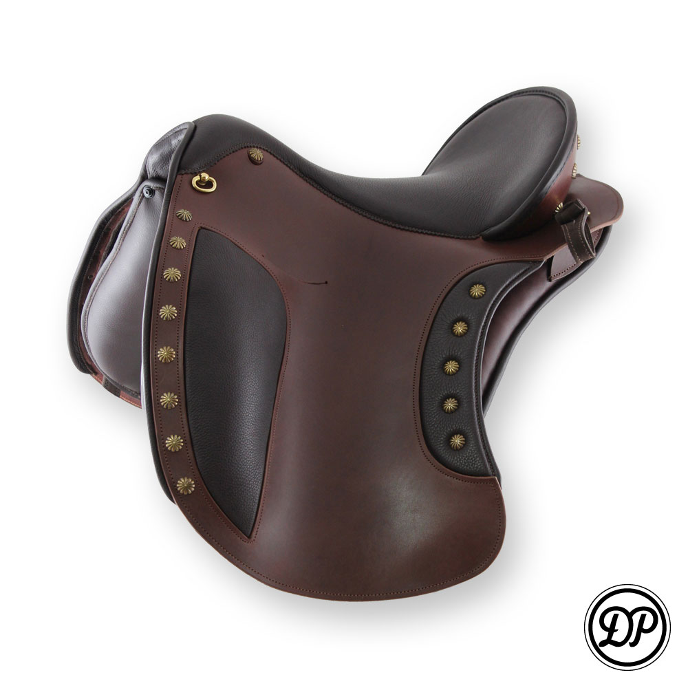 Entstanden ist aus dieser Kooperation ein speziell für die Disziplin "Working Equitation" entwickelter Sattel, der sowohl für die Dressurarbeit, als auch für lange Ritte im Gelände geeignet ist. Durch unser stufenlos verstellbares Kopfeisen, die variable 3-Punkt-Strippengurtung, die anatomisch geformten polsterbaren Sattelkissen und die Klettpauschen im Kniebereich ist er für Pferd und Reiter individuell einstellbar. Dekorative Verzierungen geben diesem Sattel eine ganz spezielle Note.