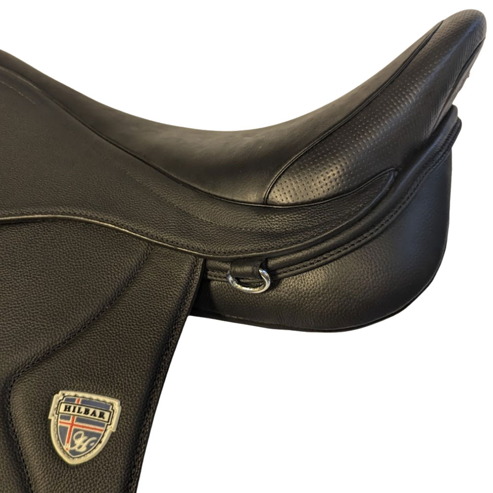 Der Escalade von Hilbar ist eine Revolution auf dem Sattelmarkt. Der hochflexible Kunststoff-Sattelbaum bietet einen korrekten Schwerpunkt und passt sich den Bewegungen des Pferdes an. Der Sattel hat weiche, wollegefüllte Kissen und einen breiten Kissenkanal. Der Escalade hat einen taillierten, äußerst komfortablen Sitz. Die Pauschen sind austauschbar und lassen sich im Winkel verstellen. Das eingebaute Kopfeisen ist durch ein Sattelverstellgerät einstellbar. Der Escalade ist ein sehr leichter Sattel, der dem Reiter einen direkten Kontakt zum Pferd ermöglicht.