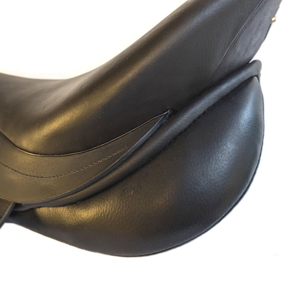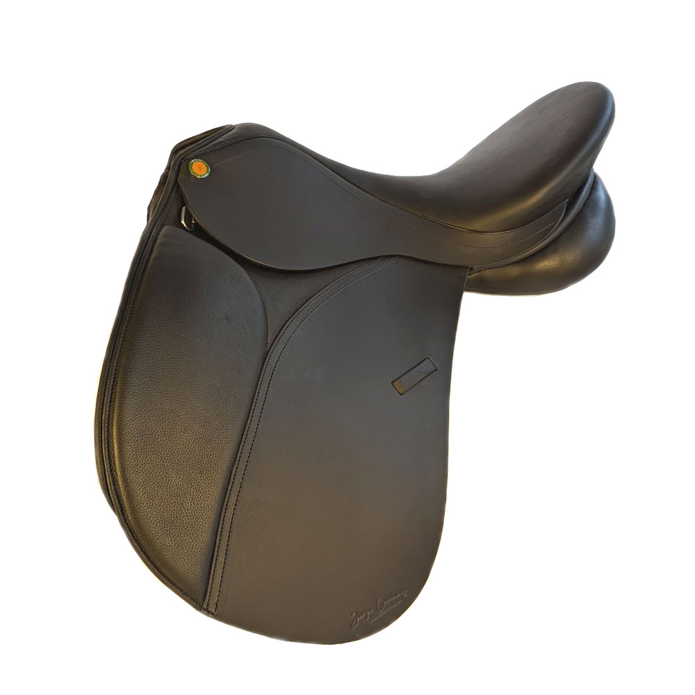 Der Gecco D von Jorge Canaves Saddlery bietet ein unschlagbares Preis- Leistungsverhältnis. Der Sattel hat weiche, wollegefüllte Kissen und einen breiten Kissenkanal. Der halbtiefe Sitz und die individuell anpassbaren Klettpauschen, engen den Reiter nicht ein. Der verbaute Kunststoff-Baum bietet die nötige Stabilität und Flexibilität. Das eingebaute Kopfeisen ist durch ein Sattelverstellgerät einstellbar. Der Gecco D ist aus robustem, offenporigen Rindsleder gefertigt.