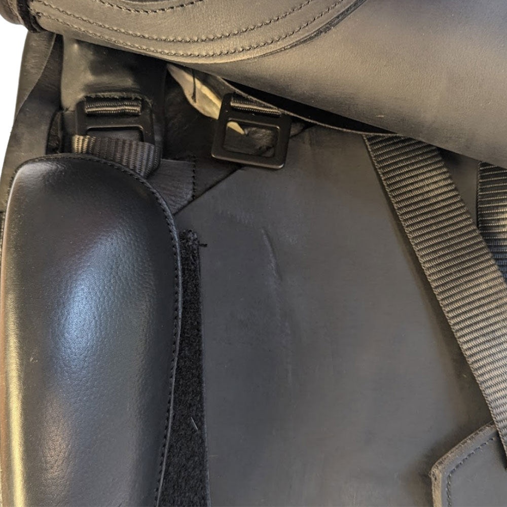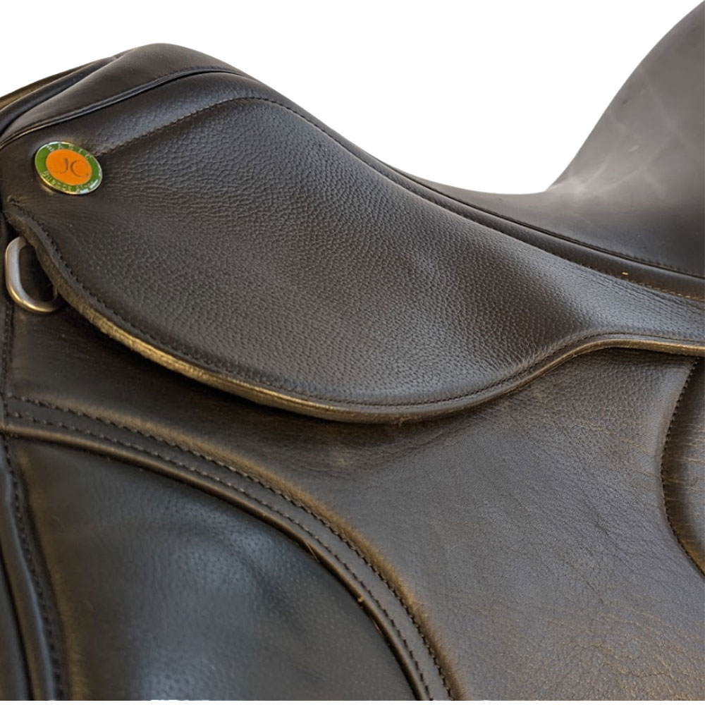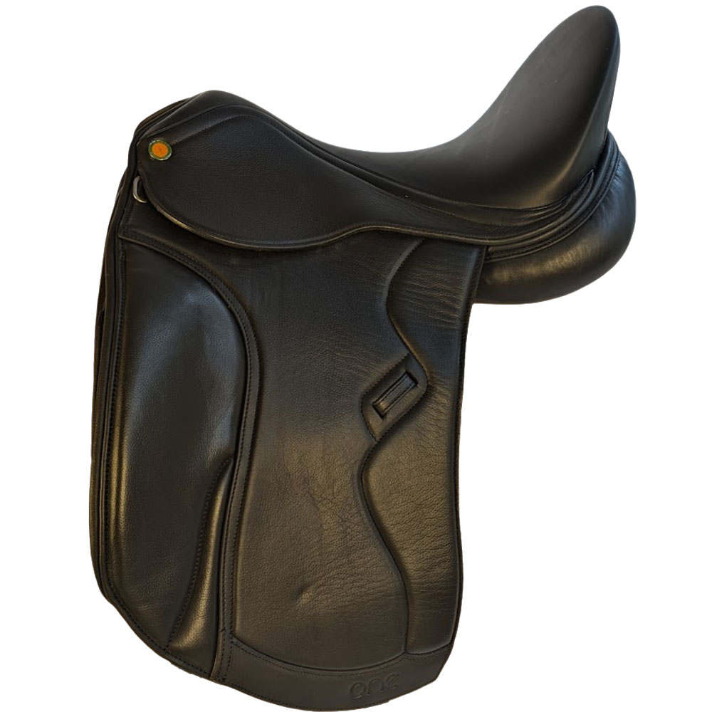 Der One Dressur von Jorge Canaves Saddlery bietet ein hervorragendes Preis-/ Leistungsverhältnis. Der Sattel hat weiche, wollegefüllte Kissen und einen breiten Kissenkanal. Der One Dressur ist mit tiefem oder halbtiefem oder flachem Sitz bestellbar. Die Klettpauschen lassen sich individuell an den Reiter anpassen. Der verbaute Kunststoff-Rahmenbaum ist mit Stahlfedern verstärkt und bietet die nötige Stabilität und Flexibilität. Das eingebaute Kopfeisen ist durch ein Sattelverstellgerät einstellbar. Es ist ein A-förmiges oder U-förmiges Kopfeisen lieferbar. Der Sattel kann ab Werk mit verschiedenen Kissenformen ausgestattet werden. Der One Dressur bietet weiche, doublierte Sattelblätter. Er ist aus robustem, offenporigen Rindsleder gefertigt.