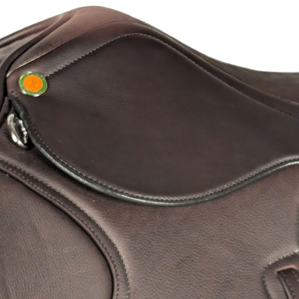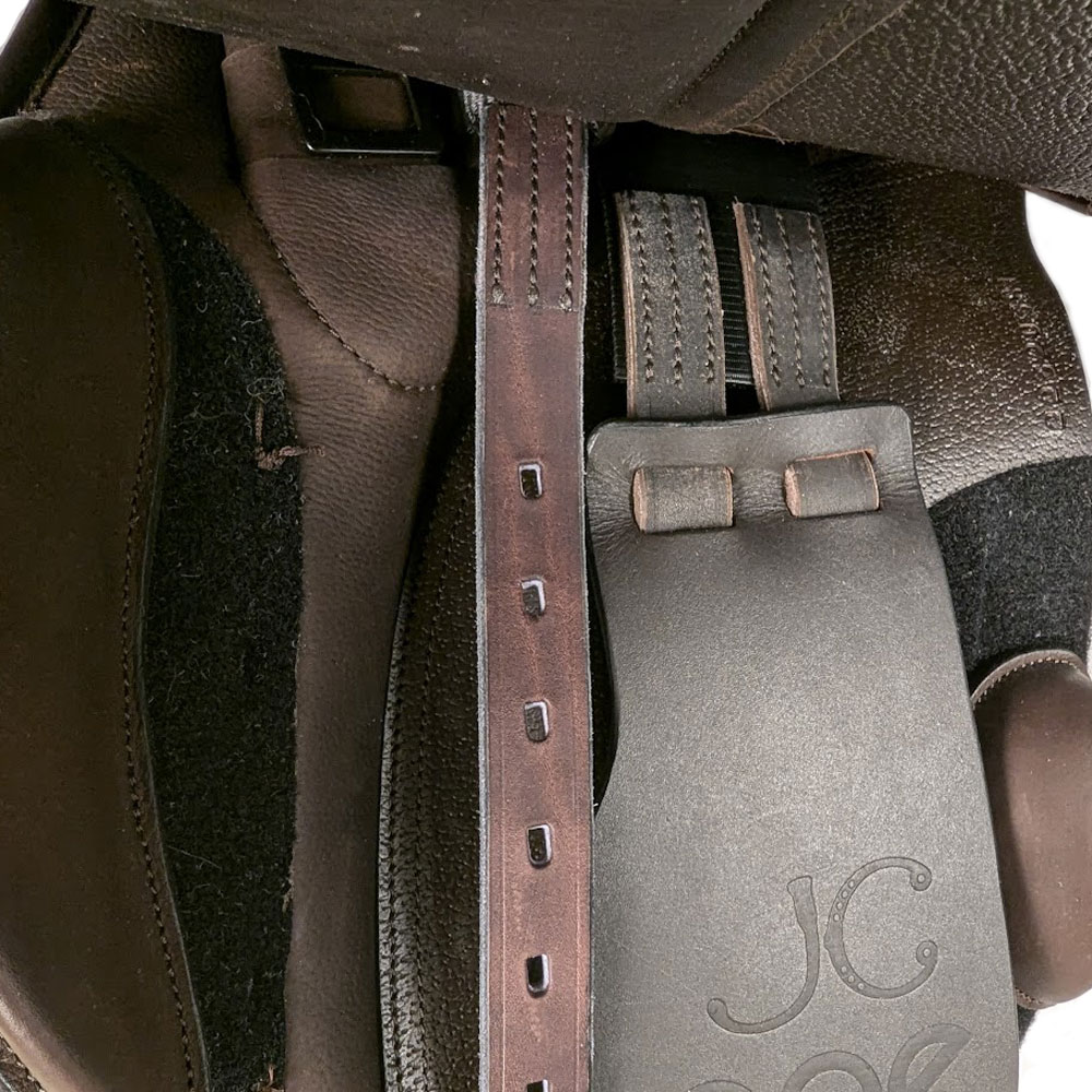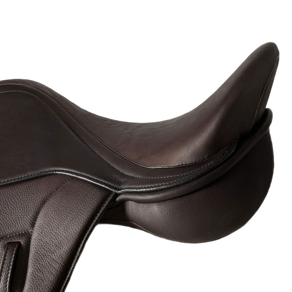 Der One VS von Jorge Canaves Saddlery bietet ein hervorragendes Preis-/ Leistungsverhältnis. Der Sattel hat weiche, wollegefüllte Kissen und einen breiten Kissenkanal. Der One VS ist mit halbtiefem oder flachem Sitz bestellbar. Die Klettpauschen lassen sich individuell an den Reiter anpassen. Der verbaute Kunststoff-Rahmenbaum ist mit Stahlfedern verstärkt und bietet die nötige Stabilität und Flexibilität. Das eingebaute Kopfeisen ist durch ein Sattelverstellgerät einstellbar. Es ist ein A-förmiges oder U-förmiges Kopfeisen lieferbar. Der Sattel kann ab Werk mit verschiedenen Kissenformen ausgestattet werden. Der One VS bietet weiche, doublierte Sattelblätter. Er ist aus robustem, offenporigen Rindsleder gefertigt.