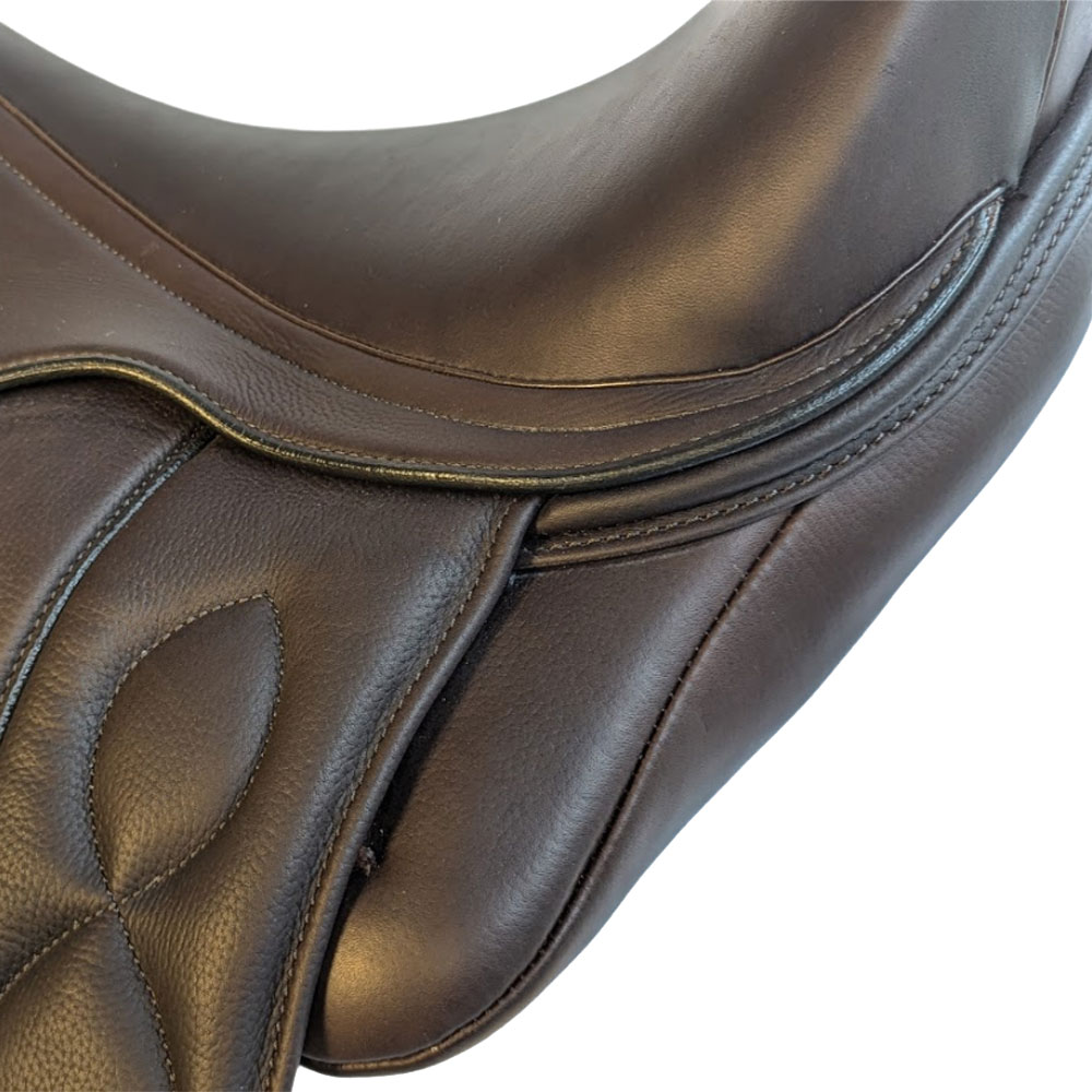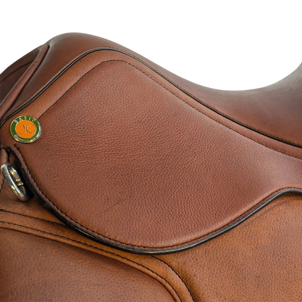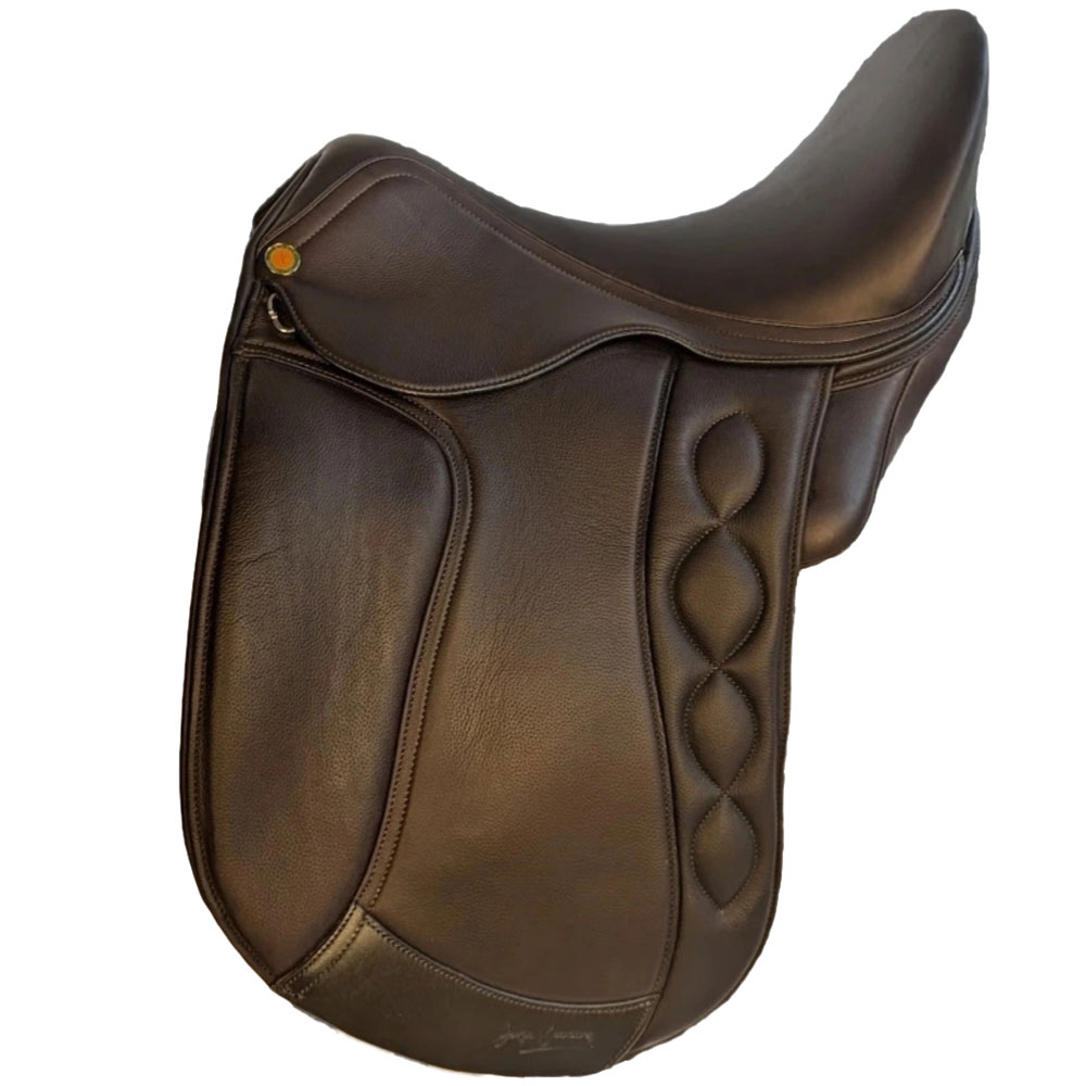 Der Pradera II von Jorge Canaves Saddlery ist der erste Barocksattel der Marke. Der Sattel hat kurze, weiche, wollegefüllte Kissen und einen breiten Kissenkanal. Er ist vorne etwas weiter ausgekammert und eignet sich daher auch für Pferde mit mehr Widerrist. Die Klettpauschen lassen sich individuell an den Reiter anpassen. Der verbaute Kunststoff-Rahmenbaum ist mit Stahlfedern verstärkt und bietet die nötige Stabilität und Flexibilität. Das eingebaute Kopfeisen ist durch ein Sattelverstellgerät einstellbar. Es ist ein A-förmiges oder U-förmiges Kopfeisen lieferbar. Das ab Werk verbaute Barockkissen bietet eine große Auflagefläche. Der Pradera II hat weiche, doublierte Sattelblätter. Der Sattel kann als Monoblatt-Version oder mit Schweißblatt bestellt werden. Er ist aus robustem, offenporigen Rindsleder gefertigt.