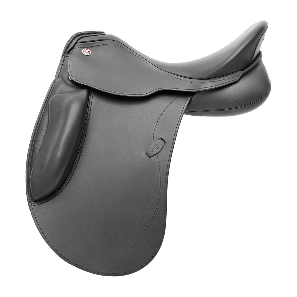 Das nicht alltägliche Design besticht durch die Form der Knielage, für die ein besonderer Schaum verwendet wird, der auch in orthopädischen Produkten zur Stabilisierung und Polsterung zum Einsatz kommt. Für den Reiter entsteht durch die Verbindung von anatomisch tiefer Sitzkurve, Pausche und der verwendeten Materialien ein besonderer Sitzkomfort mit sicherem Halt im Sattel. Die angenehm weiche Sitzfläche engt den Reiter nicht ein und ermöglicht es, frei mit der Bewegung des Pferdes mitzuschwingen. Die auf dem Sattelblatt positionierte, weiche Pausche führt das Bein dezent, ohne es in einer Position festzuhalten.